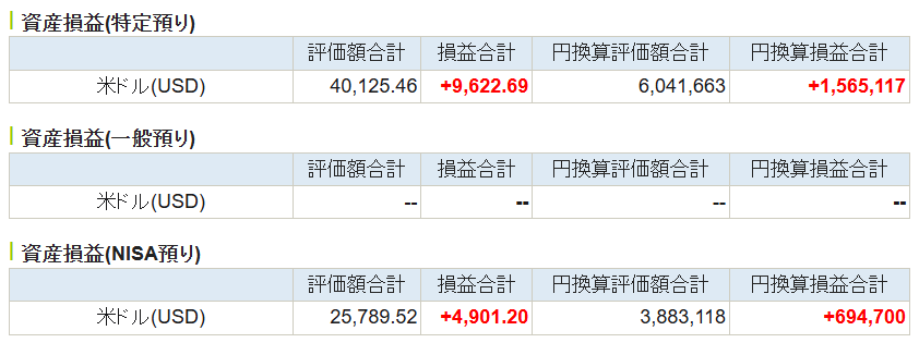 | SBI証券(特定口座) | 2,249,227 | 2,751,048 | 501,821 |