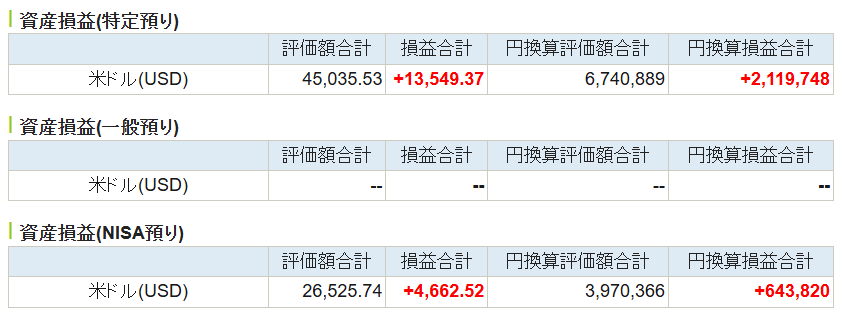 | SBI証券(特定口座) | 2,360,126 | 2,956,043 | 595,917 |