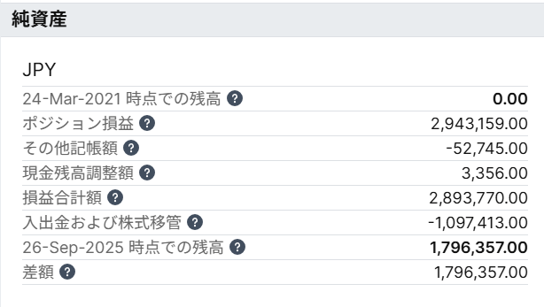 「損益合計額」の数値2,893,770円は、2021年3月25日からの累計の実現した損益と評価損益の合計金額です。