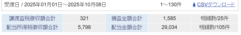 2025年の確定損益と配当金の受取額は以下の通りです。