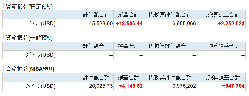 | SBI証券(特定口座) | 252,635 | 320,348 | 67,713 |