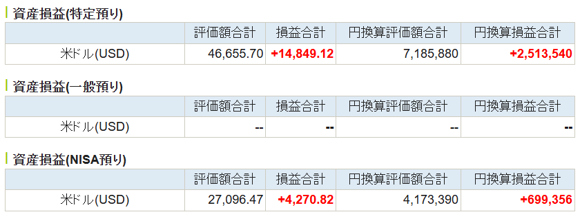 | SBI証券(特定口座) | 252,635 | 338,016 | 85,381 |