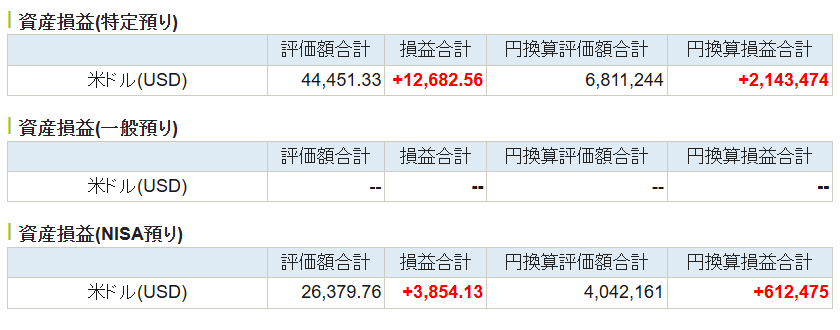 | SBI証券(特定口座) | 2,355,571 | 2,989,096 | 633,525 |