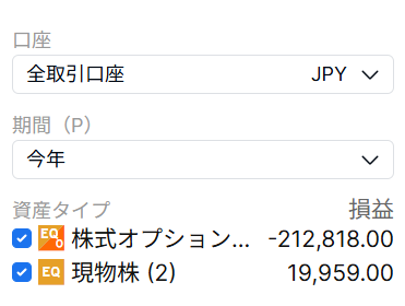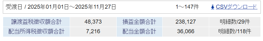2025年の確定損益と配当金の受取額は以下の通りです。