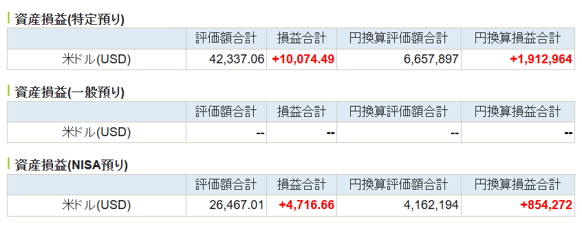 | SBI証券(特定口座) | 252,635 | 331,240 | 78,605 |