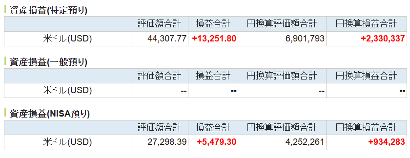 | SBI証券(特定口座) | 2,263,799 | 2,985,913 | 722,114 |