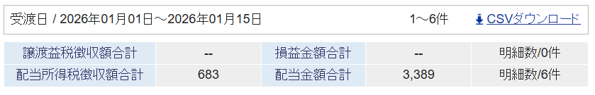 2026年の確定損益と配当金の受取額は以下の通りです。