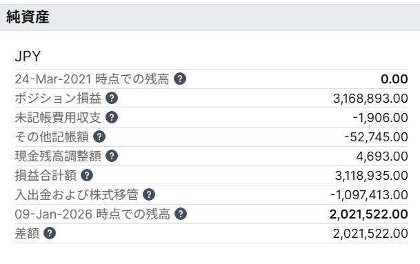 2021年(2021年6月17日から2021年12月31日まで)は、31,239円の損失が発生。