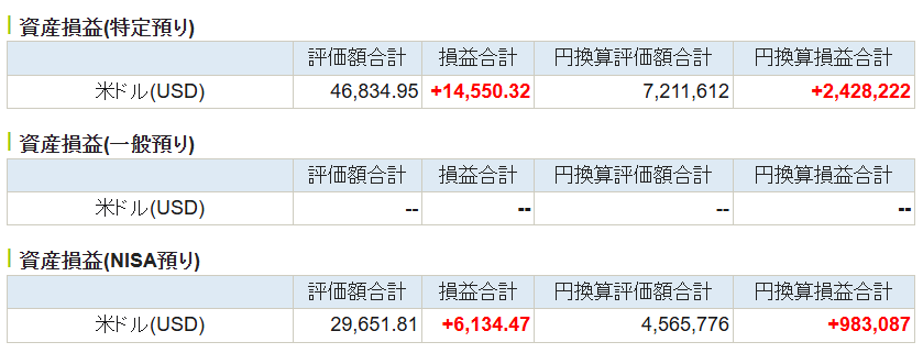 | SBI証券(特定口座) | 252,635 | 359,519 | 106,884 |