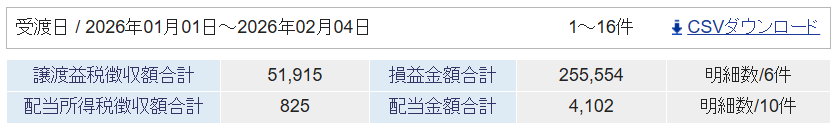 2026年の確定損益と配当金の受取額は以下の通りです。