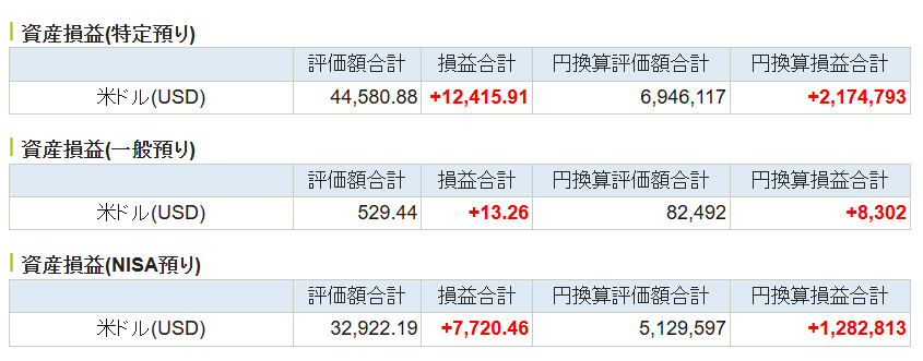 | SBI証券(特定口座) | 2,364,231 | 3,147,203 | 782,972 |