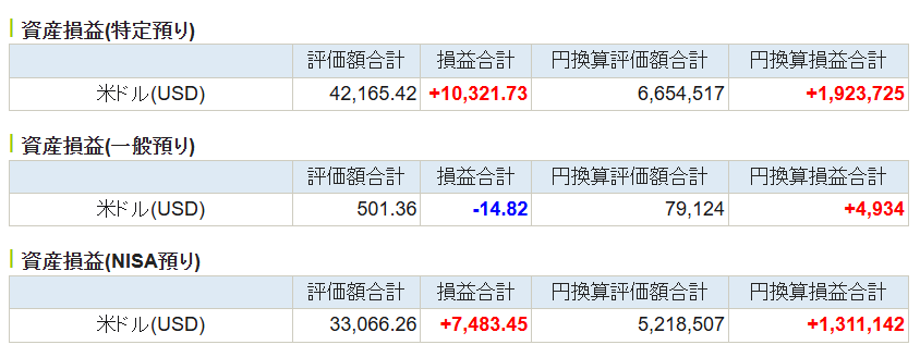 | SBI証券(特定口座) | 2,353,330 | 3,087,871 | 734,541 |