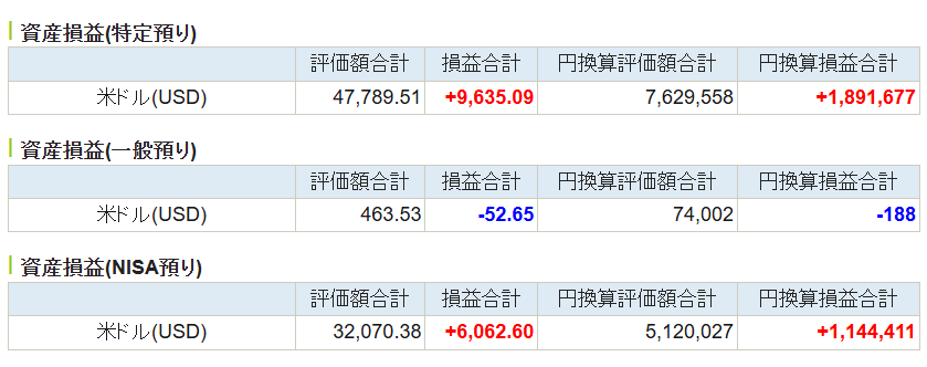 | SBI証券(特定口座) | 252,635 | 385,267 | 132,632 |