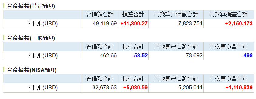 | SBI証券(特定口座) | 252,635 | 420,455 | 167,820 |